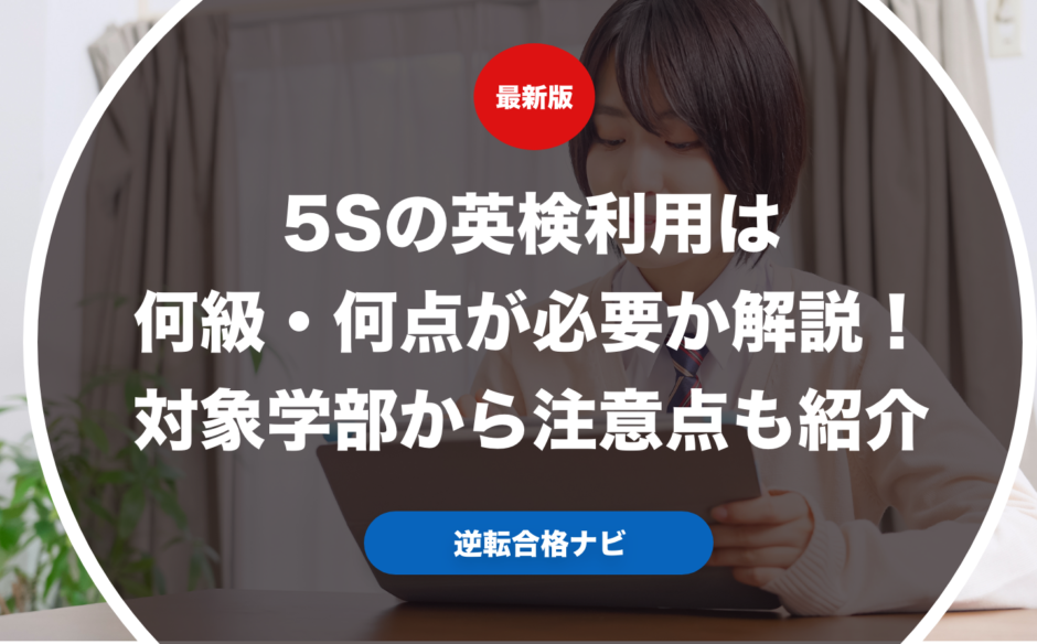 5Sの英検利用は何級・何点が必要なのか具体的に解説します。また実際に5Sで英検利用ができる学部からそれぞれの英検利用で合格するための注意点も紹介します。さらに実際に5S志望の受験生や保護者向けに英検利用の優遇措置やおすすめの受験戦略についても合わせて解説します。