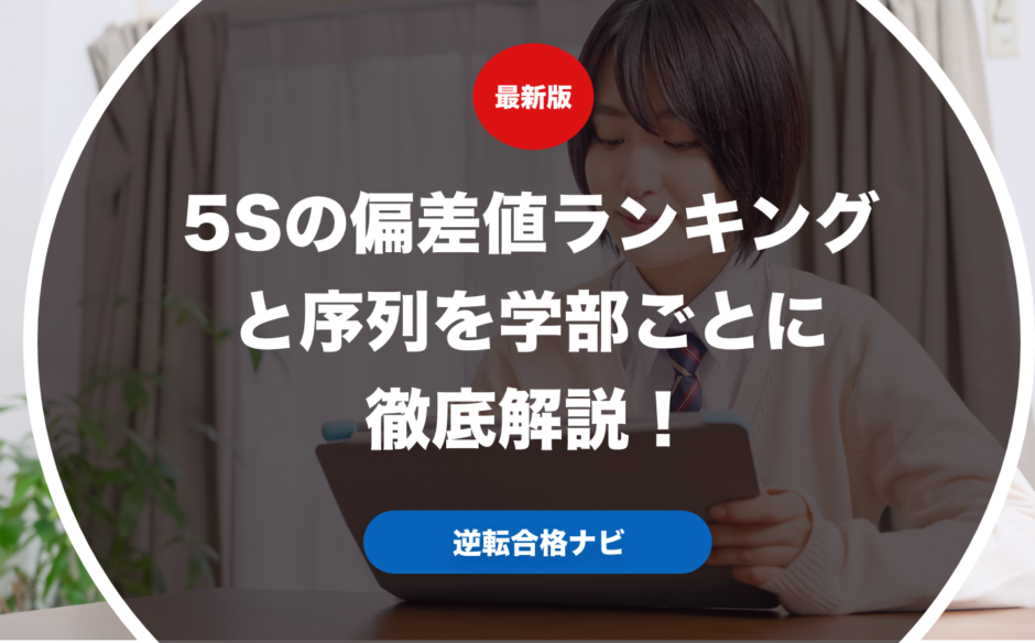 5Sの偏差値をランキング形式で学部ごとに紹介します。また5Sの序列から各大学の特徴や偏差値や難易度についてそれぞれ具体的に解説します。5Sを志望校として考えている人はぜひ参考にしてみてください。