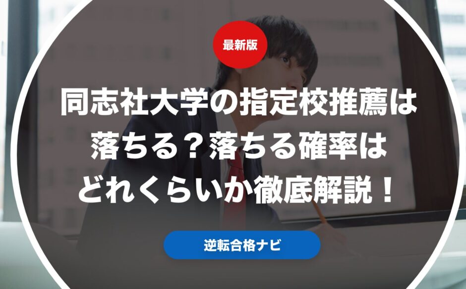 同志社大学の指定校推薦は落ちるのかどうかから実際の落ちる確率を解説します。同志社大学の指定校推薦の落ちる原因から実際の受験生のデータをもとに落ちる可能性を解説します。同志社大学の指定校推薦において落ちる可能性を下げるための対策方法についても具体的に紹介します。同志社大学の指定校推薦で大学受験を考えている受験生の方や保護者の方はぜひ参考にしてください。