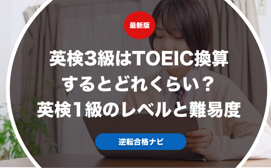 英検3級はTOEICに換算するとスコアは英検何級になるのかを具体的に解説します。また英検3級のスコアが英検5級、英検4級、英検3級、英検準二級、英検2級、英検準一級、英検1級にどれくらいのスコアが該当するのか解説します。さらに実際に英検3級の1次試験、2次試験それぞれリーディング、リスニング、ライティング、面接のレベルもTOEICと比較して解説します。
