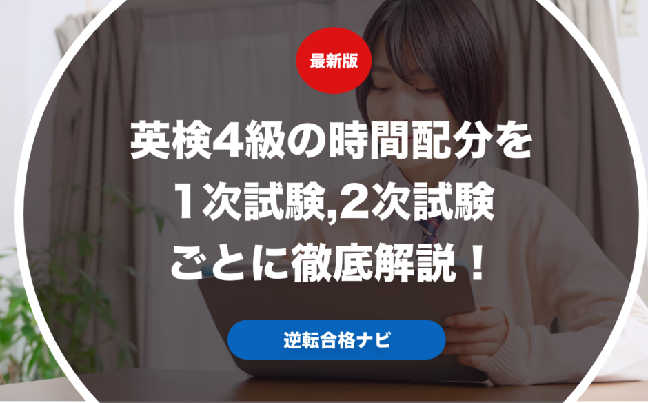英検4級の時間配分を解説します。また実際に英検4級に合格できる理想の時間配分と解き進める順番を実際にこれまで2000名以上英検に合格させてきた生徒のデータをもとに具体的に解説します。さらに実際に英検4級の1次試験、2次試験それぞれリーディング、リスニング、ライティング、面接の時間配分も合わせて解説します。