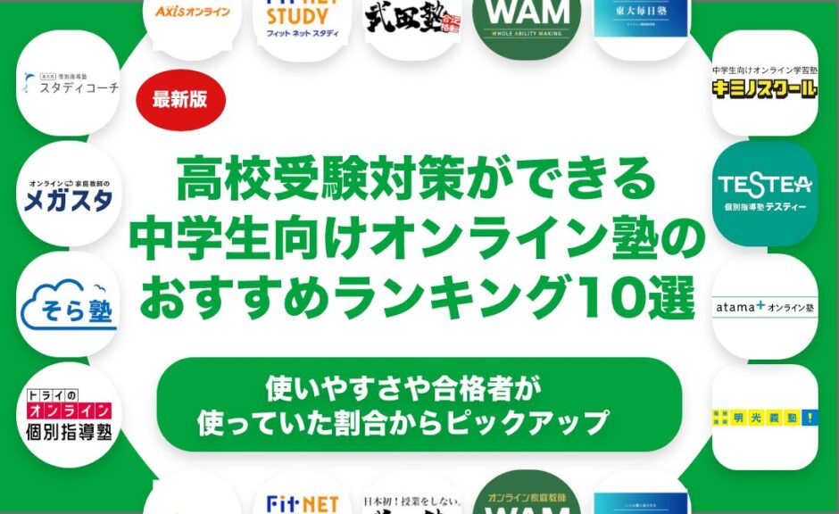 高校受験対策ができる中学生向けオンライン塾をおすすめのランキング形式で10個紹介します。高校受験対策ができる中学生向けオンライン塾を探している方におすすめの選び方や選ぶ上でのポイントも合わせて解説します。高校受験対策ができる中学生向けオンライン塾を料金や特徴で比較しながら解説します。高校受験対策ができる中学生向けオンライン塾の中でも自分に合ったものを見つけたいという方はぜひ参考にしてみてください。