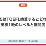 ホームIELTS対策IELTS6.0はTOEFL換算するとどれくらい?他の英語資格とも比較して解説 2026年3月10日 SHARE ポスト シェア はてブ LINE IELTS6.0はTOEFLに換算するとスコアは英検何級になるのかを具体的に解説します。またIELTS6.0のスコアが英検5級、英検4級、英検3級、英検準二級、英検2級、英検準一級、英検1級にどれくらいのスコアが該当するのか解説します。さらに実際にIELTS6.0の1次試験、2次試験それぞれリーディング、リスニング、ライティング、面接のレベルもTOEFLと比較して解説します。IELTSコーチ 塾長【この記事の監修者:IELTSコーチ塾長竹本明弘】 これまでIELTSで目標スコア達成に向けて小学生から大人まで500名以上の方に対して様々な形で伴走してきました。リスニング、リーディング、ライティング、スピーキングのそれぞれの対策からIELTSでの目標達成に向けて実際にやって良かったことや実際の難易度なども含めてわかりやすく解説します。 IELTS6.0のレベルは大学中級レベルの英語力が求められる試験です。 これからIELTS6.0のレベルと難易度を確認しながら、TOEFLとの換算についても詳しく解説していきます。 とくにIELTS6.0とTOEFLの違いや、それぞれのスコアがどのような英語力を意味するのかについて丁寧に説明するので、IELTS6.0を目指している方はしっかり確認してください。IELTS6.0のレベルと難易度 IELTS6.0のレベルは、大学入試における偏差値55から60程度の英語力が求められる試験です。 CEFRという国際的な語学指標においては、IELTS6.0はB2レベルに相当し、日常的なコミュニケーションや幅広いテーマの文章を扱える英語力が求められます。 IELTS6.0に合格するためには、約6000から7000語程度の英単語力が必要とされており、日本人受験者の平均スコアが5.8から5.9であることを考えると、IELTS6.0はその平均をわずかに上回る実力が問われる試験と言えます。IELTS6.0のレベルはTOEFL換算で何点? IELTS6.0のレベルはTOEFLiBTにおいては、73点から94点程度に相当するレベルの英語試験です。 またTOEFL L&Rのスコアに換算すると、740点から900点程度のレベルに値します。 IELTS6.0とTOEFLはどちらも英語の総合的な能力を測定する試験ですが、出題形式や求められるスキルに違いがあるため、スコア換算はあくまでも目安として参考にするようにしてください。IELTS6.0の難易度について IELTS6.0の難易度はTOEFLiBTにおいては73点から94点程度の換算となり、英語の基礎力をしっかりと持っている方が挑戦するレベルの試験です。 日本人受験者の平均スコアが5.8から5.9程度であることからも、IELTS6.0は日本人にとってそれほど簡単ではないことがわかります。 IELTS6.0のレベルは英検準1級から英検1級に相当する難易度ともされており、受験者の英語力によっては相応の準備期間と学習が必要です。 IELTS6.0はTOEFL換算すると何点? IELTS6.0はTOEFLiBT換算では73点から94点程度に相当します。 公式な換算表は存在しませんが、CEFRを基準として比較すると、IELTS6.0はB2レベルに対応し、TOEFLiBTで73点から94点が一般的な目安とされています。 TOEFLiBTの満点は120点であるため、IELTS6.0に相当する73点から94点という範囲は、全体のおよそ60%から78%程度のスコアに当たります。IELTS6.0とTOEFLの求められる力の違い IELTS6.0とTOEFLはいずれも英語の4技能を測定しますが、それぞれの試験で求められるスキルの質が異なります。 IELTS6.0のリスニングでは、主にイギリス英語やオーストラリア英語のアクセントが使われ、講義形式の長文音声への対応力が問われます。 一方でTOEFLiBTのリスニングはアメリカ英語が中心であり、大学講義形式の内容が多いため、アクセントへの慣れや背景知識の有無がスコアに影響することもあります。IELTS6.0に合格する英語力でTOEFLiBTは何点取れる? IELTS6.0に合格できる英語力があれば、TOEFLiBTでは73点から90点前後のスコアが期待できます。 ただし、IELTS6.0で高いスコアを持っていても、TOEFLiBTの問題形式に慣れていなければスコアが低くなることがあります。 そのため、IELTS6.0からTOEFLへの切り替えを検討している場合は、TOEFLiBT固有の問題形式に慣れるための対策が別途必要になります。 IELTS6.0のリーディングのレベルと難易度をTOEFLと比較 IELTS6.0のリーディングのレベルは、TOEFLiBTのリーディングと比較して語彙の難易度がやや高い傾向があります。 IELTS6.0のリーディングでは3つのパッセージを60分で読み解く必要があり、1パッセージあたりの語数はおよそ900語程度です。 TOEFLiBTのリーディングも複数のパッセージを扱いますが、IELTS6.0と異なりTRUE/FALSE/NOT GIVENのような独自の問題形式はなく、選択肢形式が中心となっています。IELTS6.0のリーディングで求められる力 IELTS6.0のリーディングでは、学術的な内容の長文を読んで正確に内容を把握する力が求められます。 とくにIELTS6.0に特有のNOT GIVENという選択肢に慣れることが、リーディングのスコアを上げる上で非常に重要なポイントです。 TOEFLiBTのリーディングでは大学の講義テキストのような文章が多く出題さ