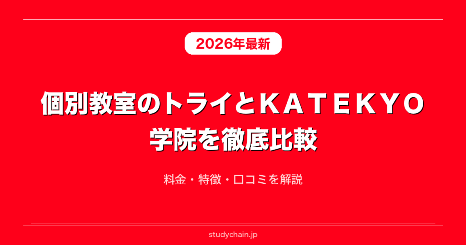 個別教室のトライとKATEKYO学院を料金や口コミや指導体制や指導方針など項目ごとに徹底解説します。個別教室のトライとKATEKYO学院を検討している方に向けてそれぞれどういう方におすすめなのかや個別教室のトライとKATEKYO学院の違いやメリットやデメリットについてもそれぞれ解説します。個別教室のトライとKATEKYO学院の良い口コミと悪い口コミも比較しながら紹介するのでぜひ実際の声も含めて参考にしてみてください。