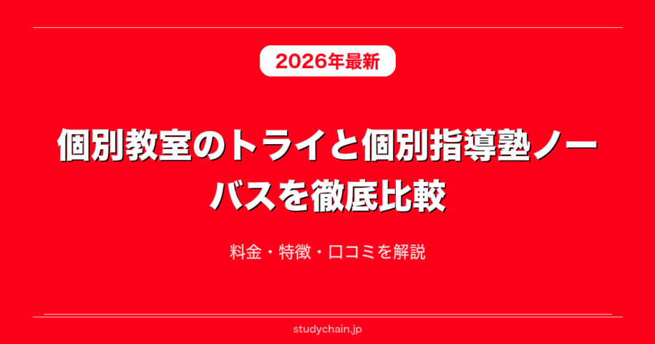 個別教室のトライと個別指導塾ノーバスを料金や口コミや指導体制や指導方針など項目ごとに徹底解説します。個別教室のトライと個別指導塾ノーバスを検討している方に向けてそれぞれどういう方におすすめなのかや個別教室のトライと個別指導塾ノーバスの違いやメリットやデメリットについてもそれぞれ解説します。個別教室のトライと個別指導塾ノーバスの良い口コミと悪い口コミも比較しながら紹介するのでぜひ実際の声も含めて参考にしてみてください。