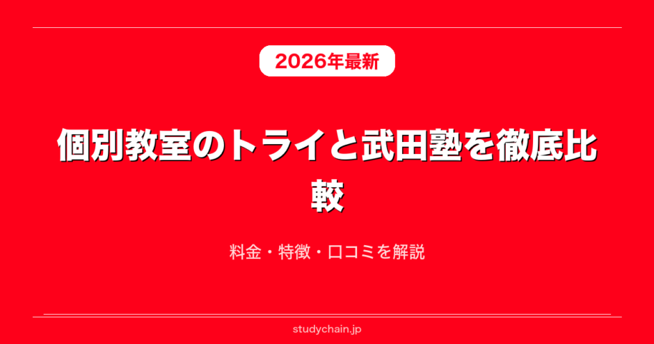 個別教室のトライと武田塾を料金や口コミや指導体制や指導方針など項目ごとに徹底解説します。個別教室のトライと武田塾を検討している方に向けてそれぞれどういう方におすすめなのかや個別教室のトライと武田塾の違いやメリットやデメリットについてもそれぞれ解説します。個別教室のトライと武田塾の良い口コミと悪い口コミも比較しながら紹介するのでぜひ実際の声も含めて参考にしてみてください。