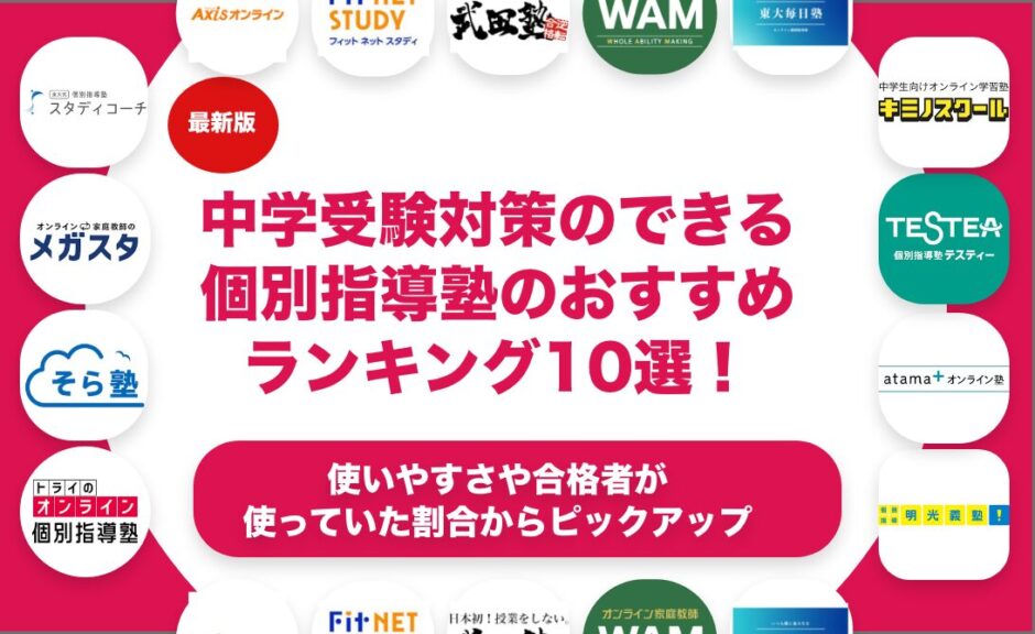中学受験対策のできる個別指導塾をおすすめのランキング形式で11個紹介します。中学受験対策のできる個別指導塾を探している方におすすめの選び方や選ぶ上でのポイントも合わせて解説します。