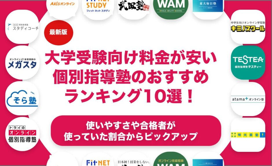 料金が安い大学受験対策のできる個別指導塾をランキング形式で紹介します。