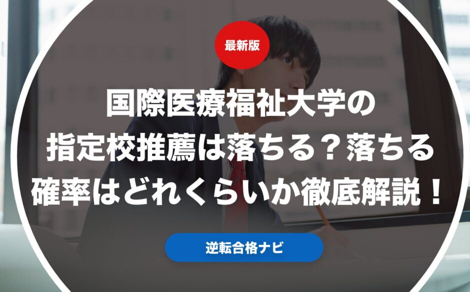 国際医療福祉大学の指定校推薦は落ちるのかどうかから実際の落ちる確率を解説します。国際医療福祉大学の指定校推薦の落ちる原因から実際の受験生のデータをもとに落ちる可能性を解説します。国際医療福祉大学の指定校推薦において落ちる可能性を下げるための対策方法についても具体的に紹介します。国際医療福祉大学の指定校推薦で大学受験を考えている受験生の方や保護者の方はぜひ参考にしてください。