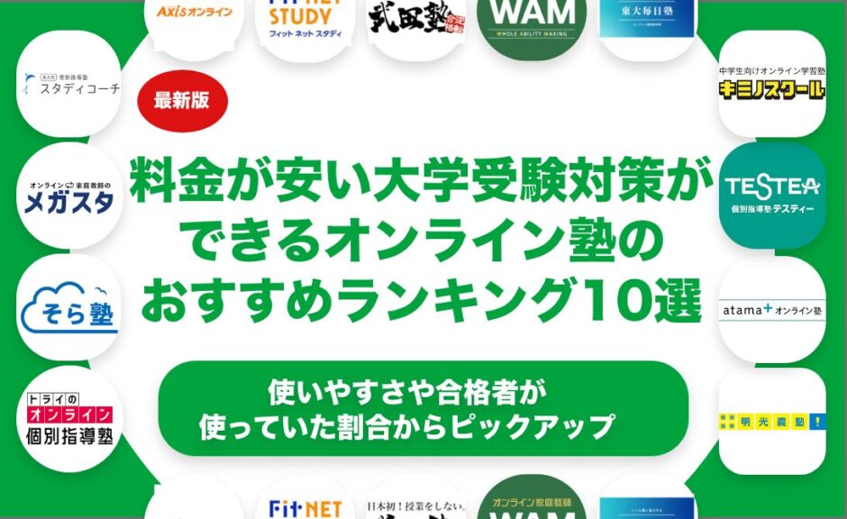 料金が安い大学受験対策のオンライン家庭教師を探している受験生に向けて厳選した11のサービスを紹介します。それぞれの塾には独自の強みがあり志望校や学習スタイルに合わせて選べます。