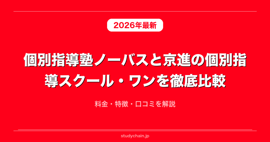 個別指導塾ノーバスと京進の個別指導スクール・ワンを料金や口コミや指導体制や指導方針など項目ごとに徹底解説します。個別指導塾ノーバスと京進の個別指導スクール・ワンを検討している方に向けてそれぞれどういう方におすすめなのかや個別指導塾ノーバスと京進の個別指導スクール・ワンの違いやメリットやデメリットについてもそれぞれ解説します。個別指導塾ノーバスと京進の個別指導スクール・ワンの良い口コミと悪い口コミも比較しながら紹介するのでぜひ実際の声も含めて参考にしてみてください。