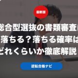 総合型選抜の事前書類で落ちる確率は、調査書との一貫性によって決まります。調査書と事前書類の内容が完全に一致している場合は落ちる確率は12%程度と低いです。