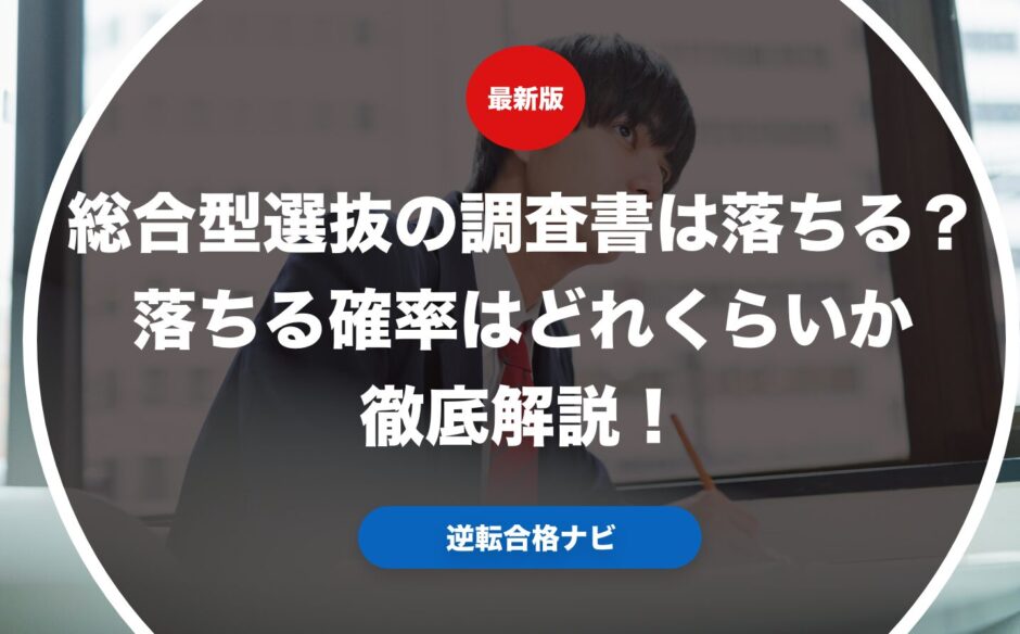 総合型選抜において調査書だけを理由に落ちる確率は一概には言えませんが、調査書の内容が大学の基準を満たしていない場合は書類選考の段階で50%以上の確率で落ちると考えられます。