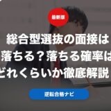 総合型選抜の面接で落ちる確率は、調査書の内容についての質問への回答によって決まります。調査書の内容について矛盾なく答えられる場合は面接で落ちる確率は20%程度です。