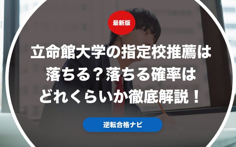 立命館大学の指定校推薦は落ちるのかどうかから実際の落ちる確率を解説します。立命館大学の指定校推薦の落ちる原因から実際の受験生のデータをもとに落ちる可能性を解説します。立命館大学の指定校推薦において落ちる可能性を下げるための対策方法についても具体的に紹介します。立命館大学の指定校推薦で大学受験を考えている受験生の方や保護者の方はぜひ参考にしてください。
