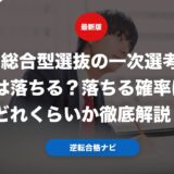 大学や学部によって異なりますが、一般的に一次選考通過者の3〜6割が総合型選抜の二次選考に落ちています。難関大学ではこの割合がさらに高くなることもあります。