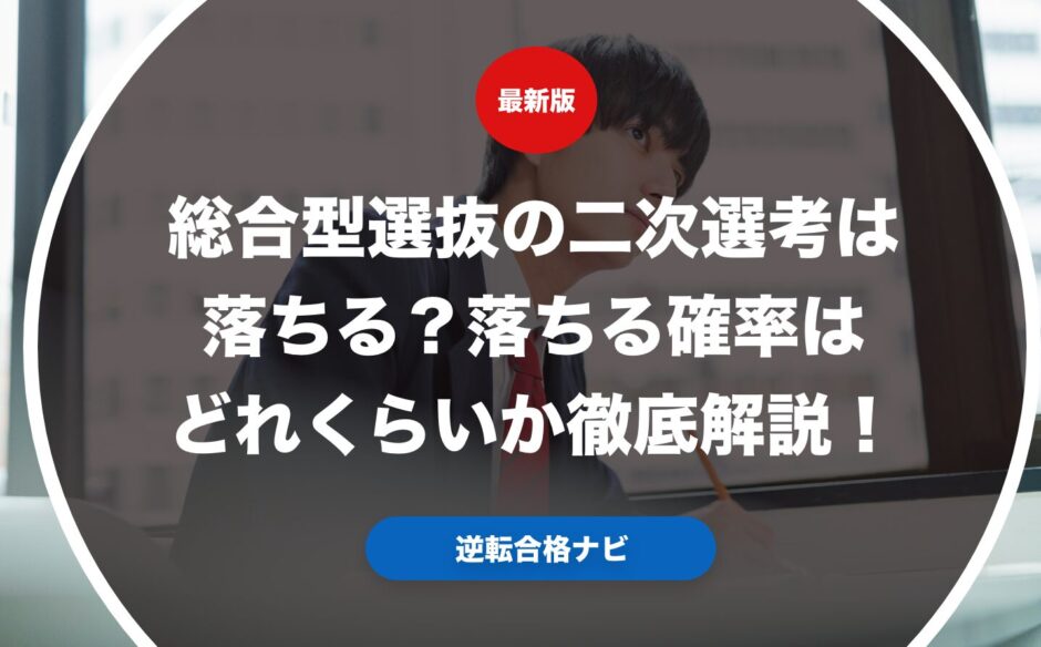 総合型選抜の二次選考は落ちるのかどうかから実際の落ちる確率を解説します。総合型選抜の二次選考の落ちる原因から実際の受験生のデータをもとに落ちる可能性を解説します。総合型選抜の二次選考において落ちる可能性を下げるための対策方法についても具体的に紹介します。総合型選抜の二次選考で大学受験を考えている受験生の方や保護者の方はぜひ参考にしてください。