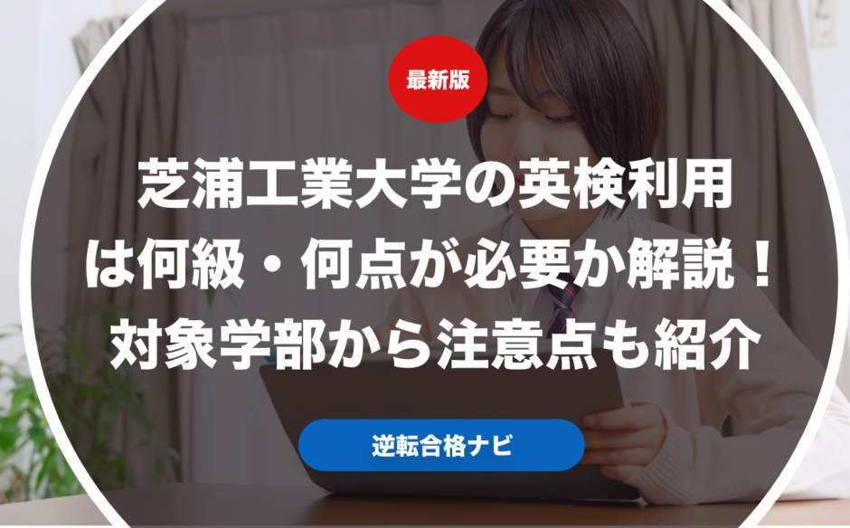 芝浦工業大学の英検利用は何級・何点が必要なのか具体的に解説します。また実際に芝浦工業大学で英検利用ができる学部からそれぞれの英検利用で合格するための注意点も紹介します。さらに実際に芝浦工業大学志望の受験生や保護者向けに英検利用の優遇措置やおすすめの受験戦略についても合わせて解説します。
