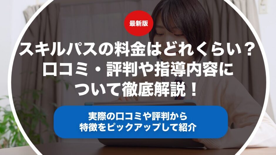 スキルパスの料金について入会金や月謝や授業料や教材費用についてそれぞれ解説します。また実際の口コミや評判をもとにスキルパスの指導内容の特徴やどんな人におすすめの塾なのかどうか具体的に解説します。スキルパスの入塾を検討しているという方はぜひ参考にしてみてください。