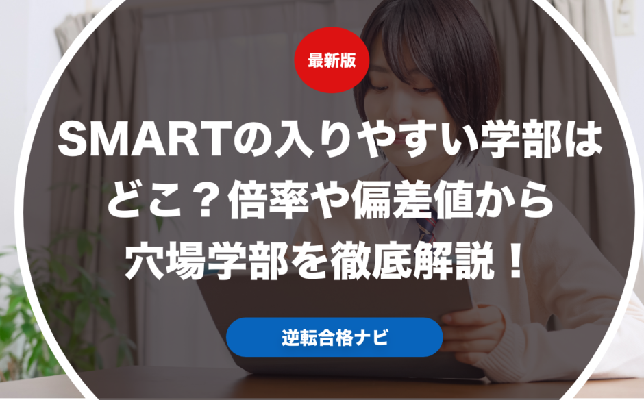 SMARTの入りやすい学部と穴場学部を具体的に解説します。またSMARTの倍率の低い穴場学部や偏差値の低い受かりやすい学部学科をそれぞれ解説します。SMART志望の受験生やその保護者の方はぜひ参考にしてみてください。