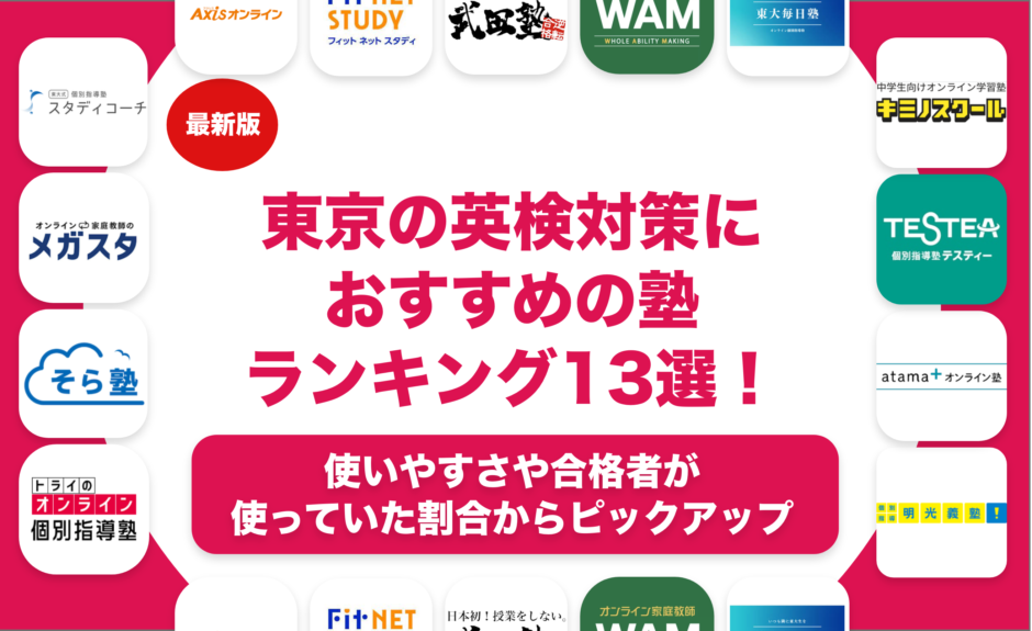 東京の英検対策におすすめの塾をランキング形式で13個紹介します。東京の英検対策におすすめの塾をそれぞれレベル別にかつ目的別に実際に通っている人の口コミをもとに作成します。東京の英検対策におすすめの塾を料金や特徴で比較しながら解説します。東京の英検対策におすすめの塾の中でも英検対策初心者向けの塾や英検1級や英検準一級や英検2級など応用レベルの英検対策ができる塾をそれぞれ紹介します。