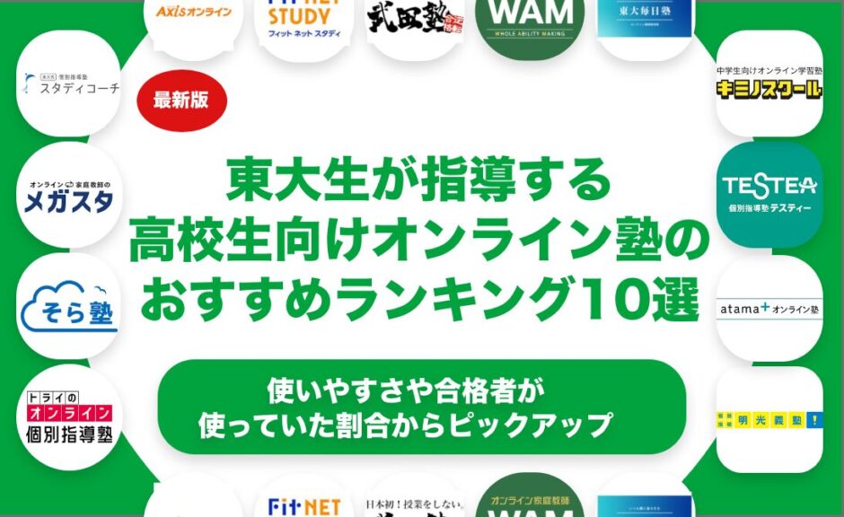 東大生が指導する高校生向けオンライン塾を料金や特徴で比較しながら解説します。東大生が指導する高校生向けオンライン塾の中でも自分に合ったものを見つけたいという方はぜひ参考にしてみてください。