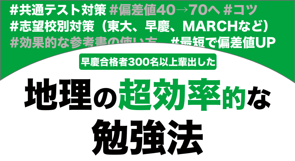 地理の共通テストで満点が取れる勉強法から志望校別に東大や京大や早慶志望におすすめの地理の勉強法から実際にやってよかった地理の勉強法を解説します。